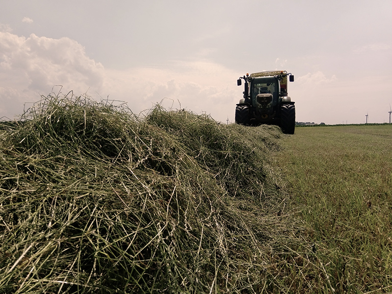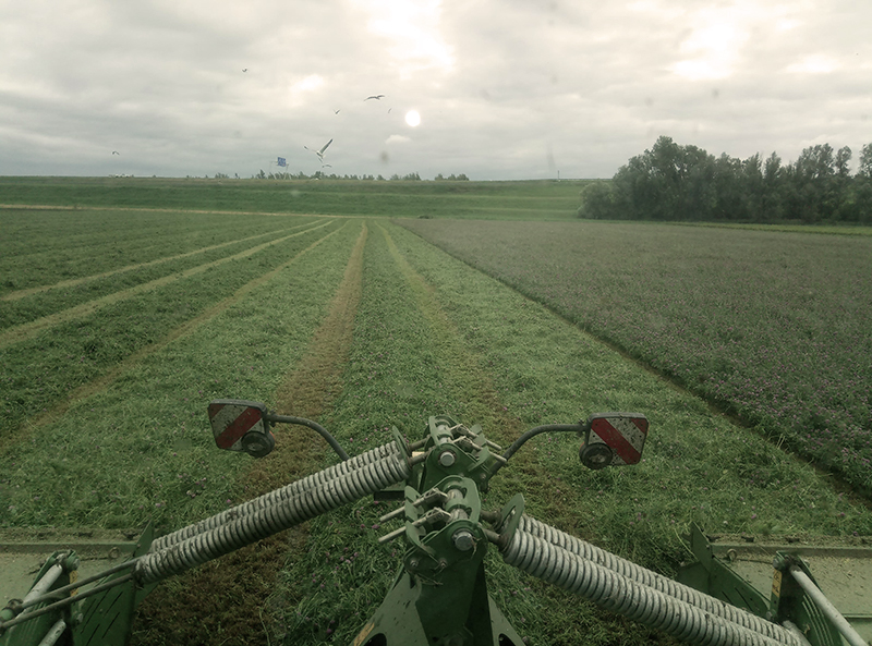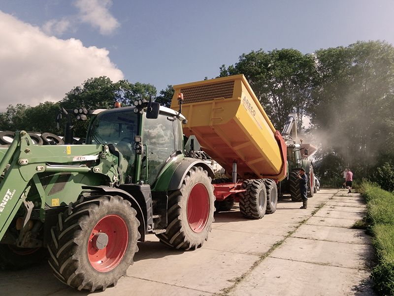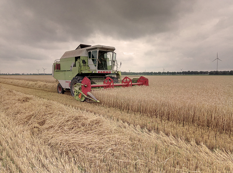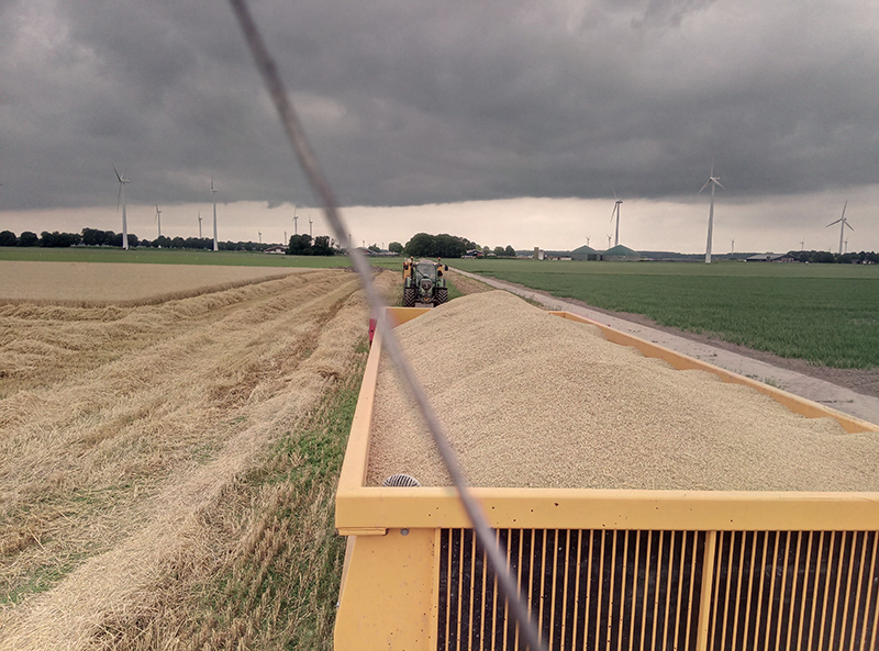 Van graan op het land, tot geplette korrels gerst/tarwe in de slurf en stro voor in de boxen.